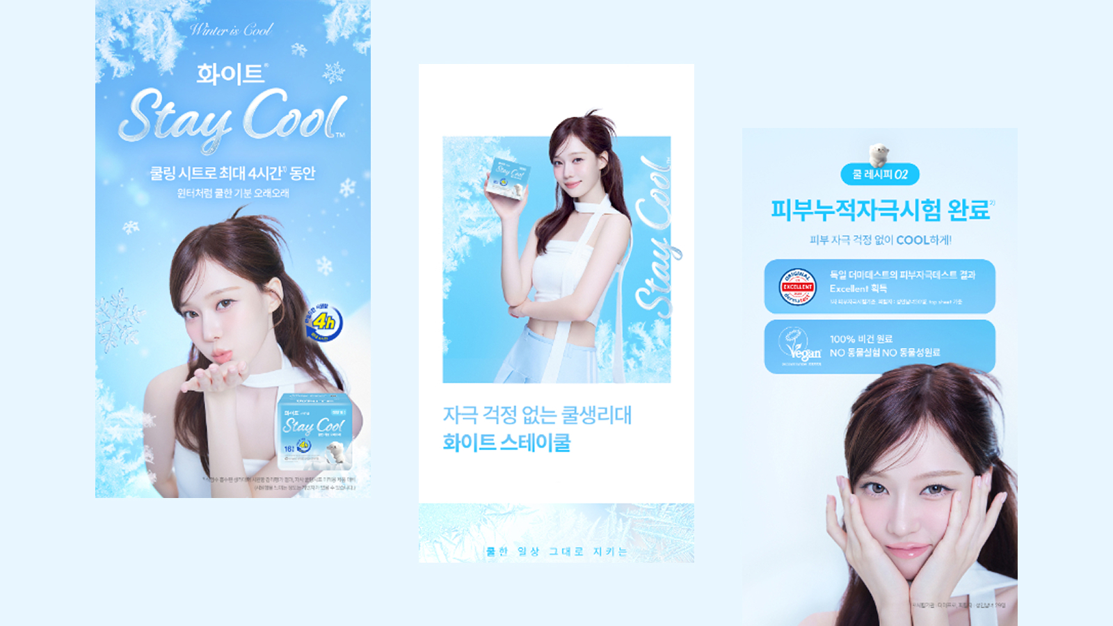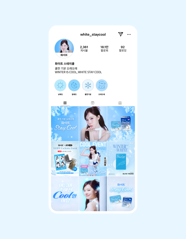 온더플래닛은 유한킴벌리와 협업해 SM 소속 아티스트 에스파의 멤버 윈터를 캠페인 모델로 선정하고, 스테이쿨 제품의 쿨링감, 피부 저자극, 흡수력 등 핵심 USP를 명확히 전달하는 커뮤니케이션 전략을 기획했습니다. 브랜드 필름 온에어를 비롯해 윈터 포토카드 제작, 올리브영 기획전, 무신사 뷰티 팝업스토어 운영 등 온·오프라인 통합 캠페인을 전개했습니다.