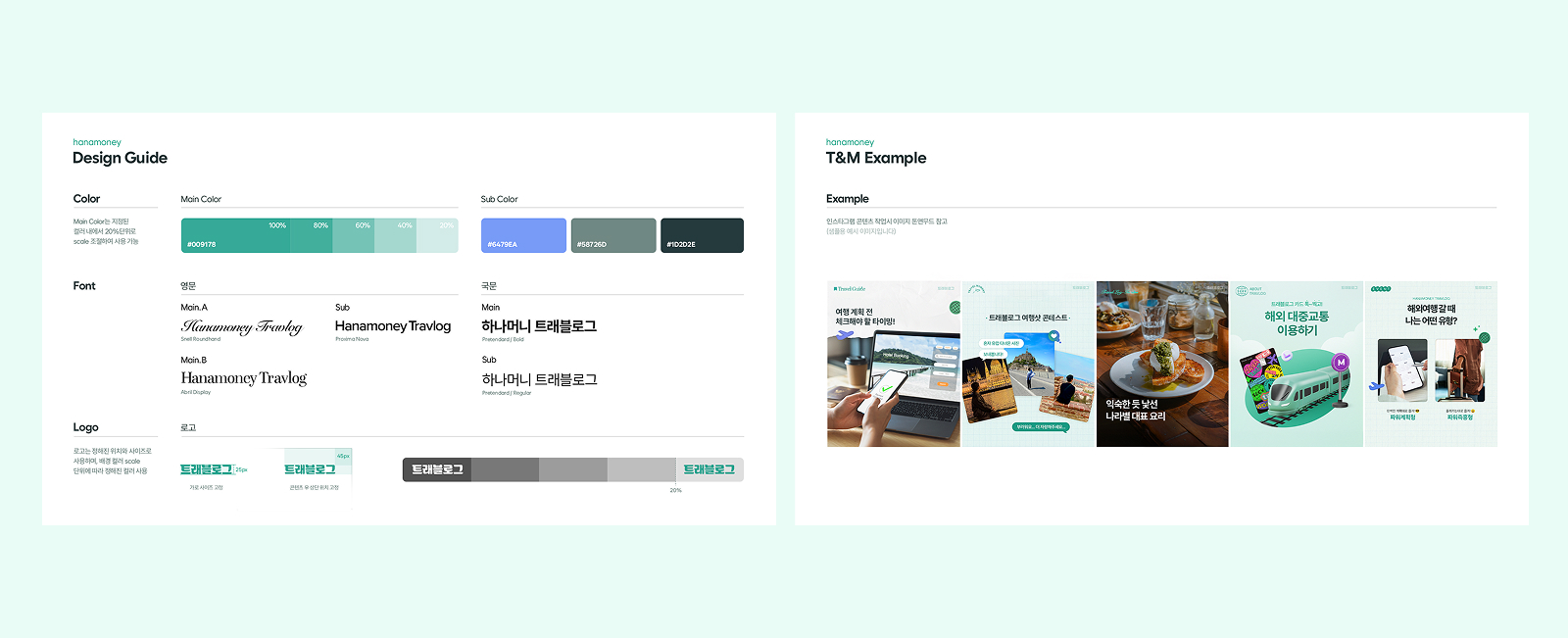 하나머니 <트래블로그>는 하나금융그룹의 하나머니 앱을 기반으로 한 해외여행 특화 서비스로, 환전 수수료 없는 외화 충전과 해외 결제 및 ATM 출금 수수료 면제를 강점으로 하고 있습니다. 여행 특화 카드 시장에서 가입자 수, 카드 사용 점유율, 결제 금액 모두 1위를 기록하고 있었으나, 서비스 경험이 없는 잠재 고객을 대상으로 인지도 확장과 브랜드 포지셔닝 강화를 위한 소셜 콘텐츠 전략이 필요했습니다.