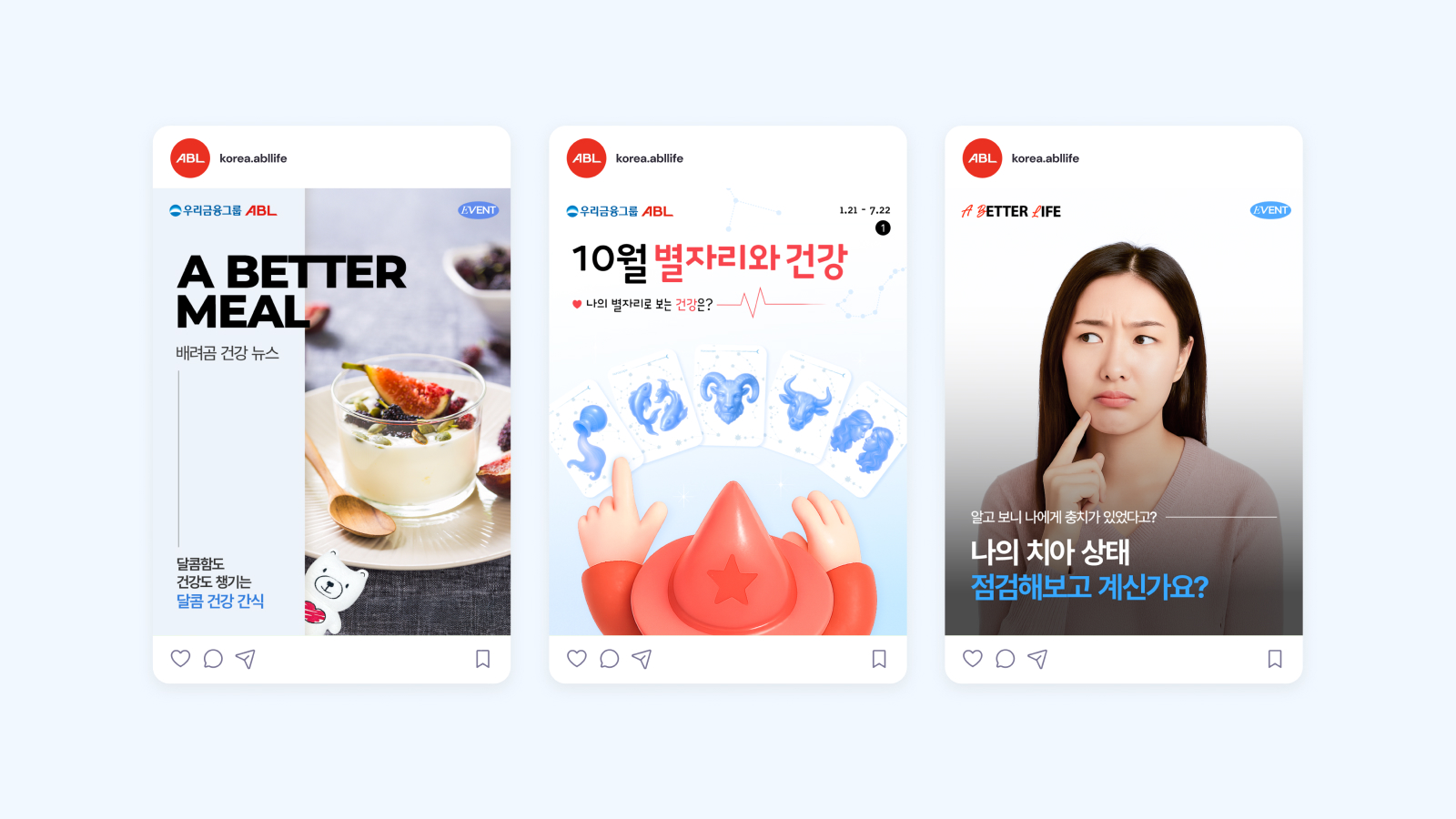 ABL생명과 온더플래닛은 ‘더 나은 삶, A BETTER LIFE’라는 브랜드 핵심 메시지를 전달하기 위해 유튜브, 인스타그램, 네이버 블로그를 중심으로 SNS 마케팅을 전개했습니다. 각 채널의 특성을 고려해 유기적인 도달과 참여를 확대하고, 고객의 일상에 자연스럽게 스며드는 콘텐츠를 기획·제작했습니다. 또한 2025년 7월 우리금융그룹과 함께하는 새로운 여정을 알리는 유튜브 티저 콘텐츠를 통해, 브랜드의 변함없는 약속과 미래 비전을 함께 전달했습니다.