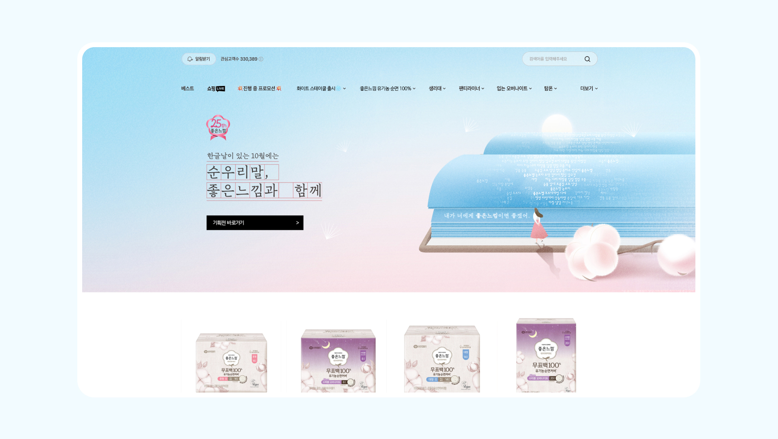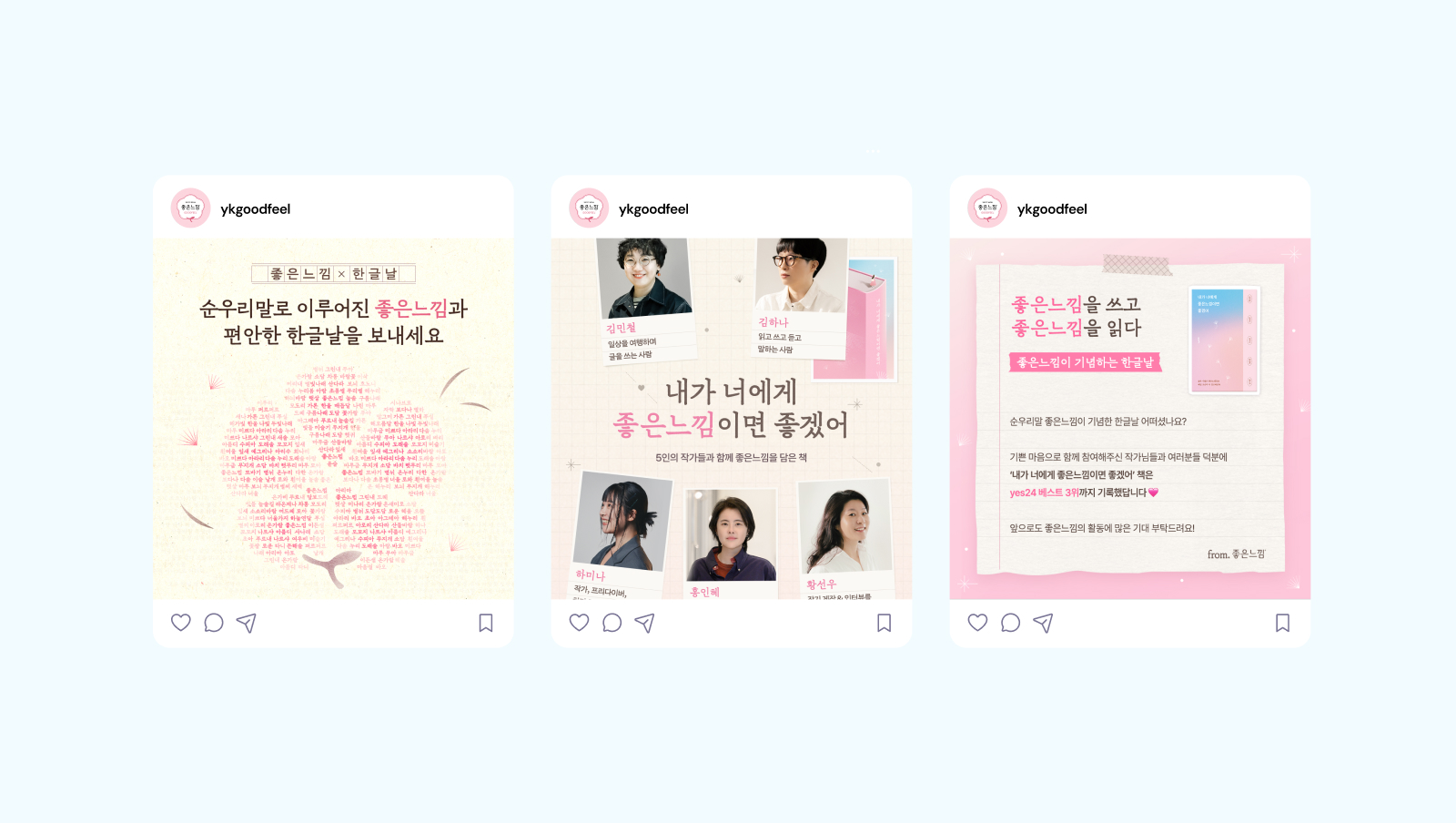 캠페인은 문학 마케팅을 통해 MZ세대 여성 독자들의 공감을 이끌어냈으며, SNS 콘텐츠, 오디오북, 오프라인 마트 연계 등 다양한 접점으로 확장되었습니다. 고객들은 좋은느낌의 한글날 캠페인에 대해 진정성 있다는 반응을 보였고, 브랜드에 대한 호감과 신뢰는 자연스럽게 구매 경험으로 이어졌습니다. 본 캠페인은 브랜드 헤리티지를 한글날의 의미와 연결해, 좋은느낌만의 방식으로 기억되는 한글날 캠페인으로 자리 잡았습니다.