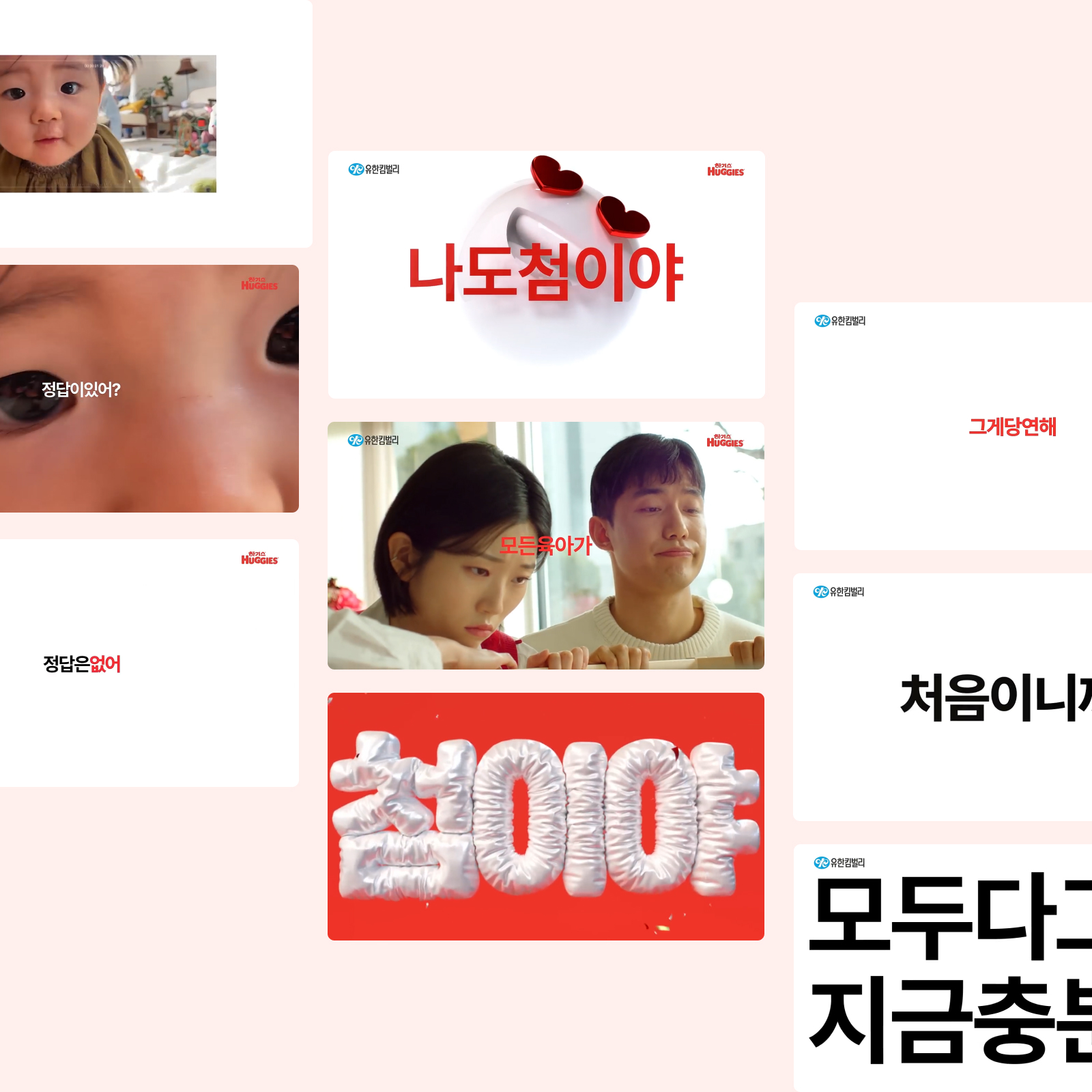 깊은 공감이 담긴 내면의 목소리를 적용한 모든 카피를 한 줄에 다섯 글자로 맞춰 리듬감을 살리고, 하기스만의 브랜드 컬러 및 네이처메이드 기저귀 등 관련 제품 오브제를 총동원해서 다양한 3D그래픽과 모션을 더해 리드미컬한 편집감으로 시선을 뗄 수 없도록 의도했습니다. 도발적이고 스타일리시한 접근으로 동시대 육아 세대에게 남다른 위로의 크리에이티브를 제시했습니다.