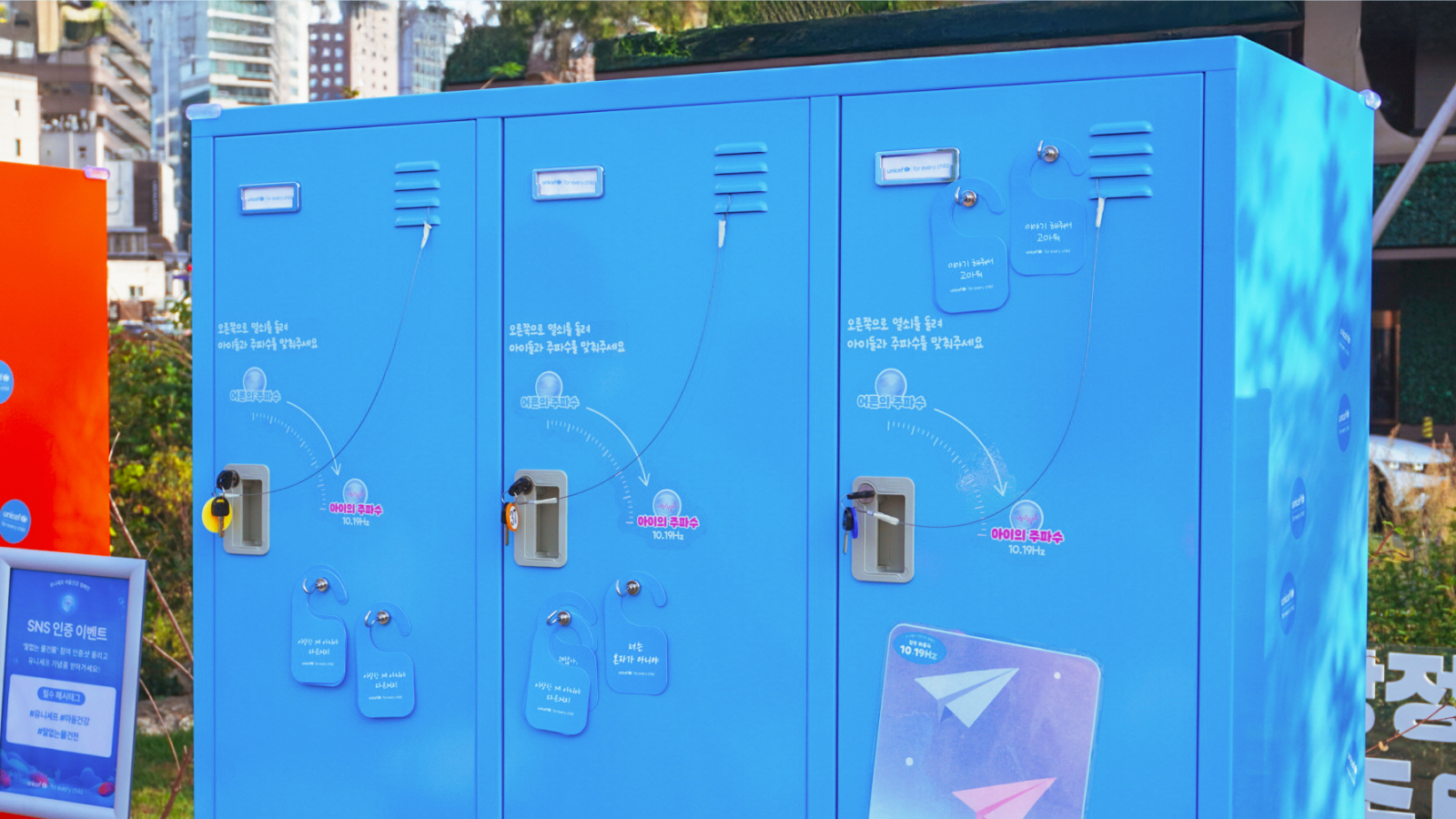 유니세프 마음건강 캠페인의 오프라인 행사인 제1회 <말없는 물건展>은 10월 이틀간 책 읽는 서울광장에서 시민 1,500명의 참여와 함께 진행되었습니다. 유니세프에서 수집한 청소년들의 이야기에 담긴 학업/진로, 친구/대인관계, 가족, 자아/정체성이라는 주제를 각 다른 색상의 캐비닛으로 구분하며 폭넓은 호응을 얻었습니다.