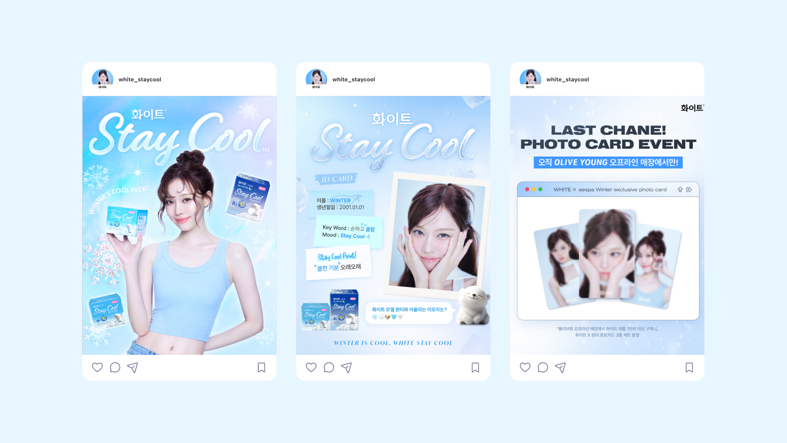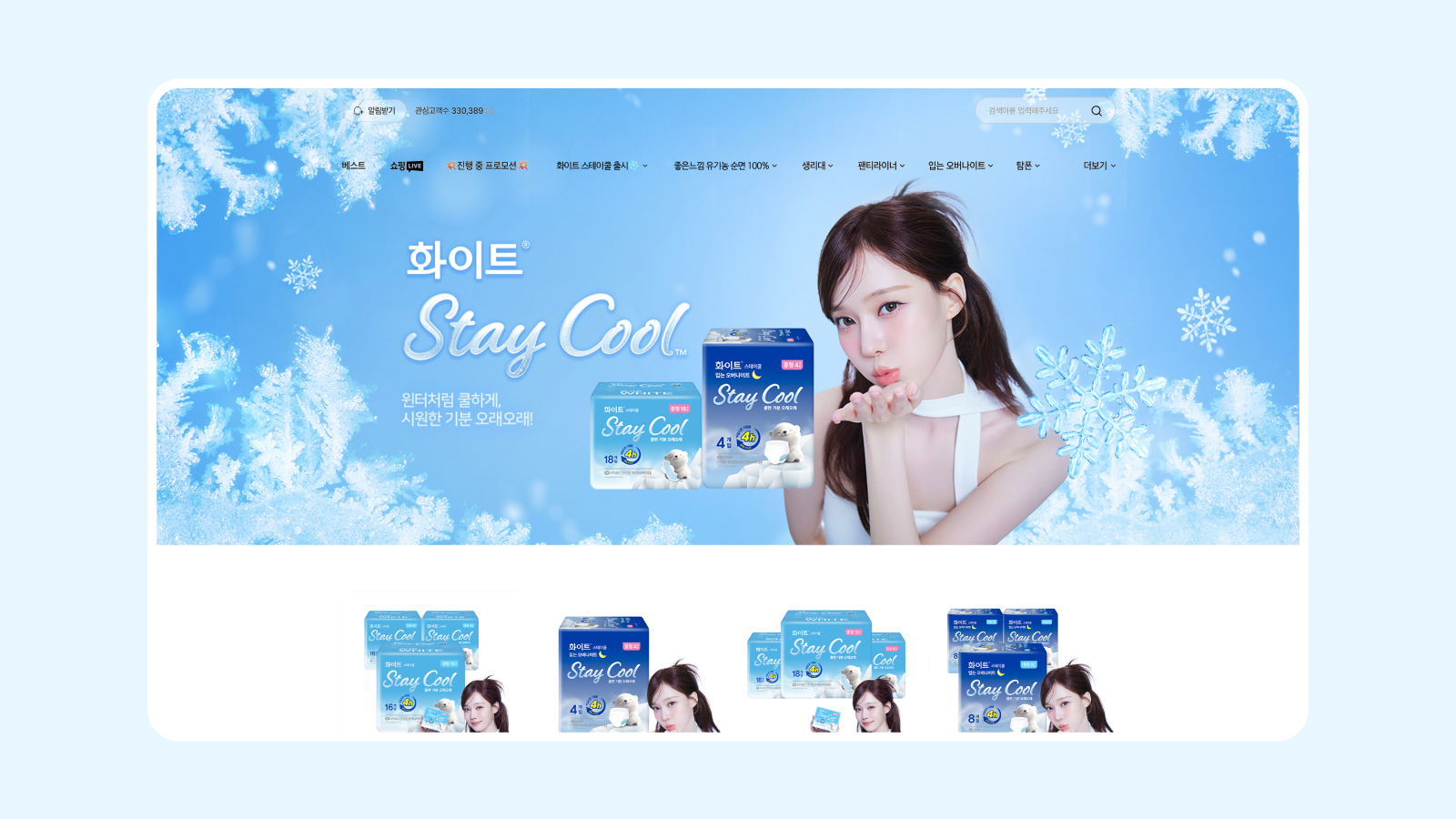 온더플래닛은 유한킴벌리와 협업해 SM 소속 아티스트 에스파의 멤버 윈터를 캠페인 모델로 선정하고, 스테이쿨 제품의 쿨링감, 피부 저자극, 흡수력 등 핵심 USP를 명확히 전달하는 커뮤니케이션 전략을 기획했습니다. 브랜드 필름 온에어를 비롯해 윈터 포토카드 제작, 올리브영 기획전, 무신사 뷰티 팝업스토어 운영 등 온·오프라인 통합 캠페인을 전개했습니다.