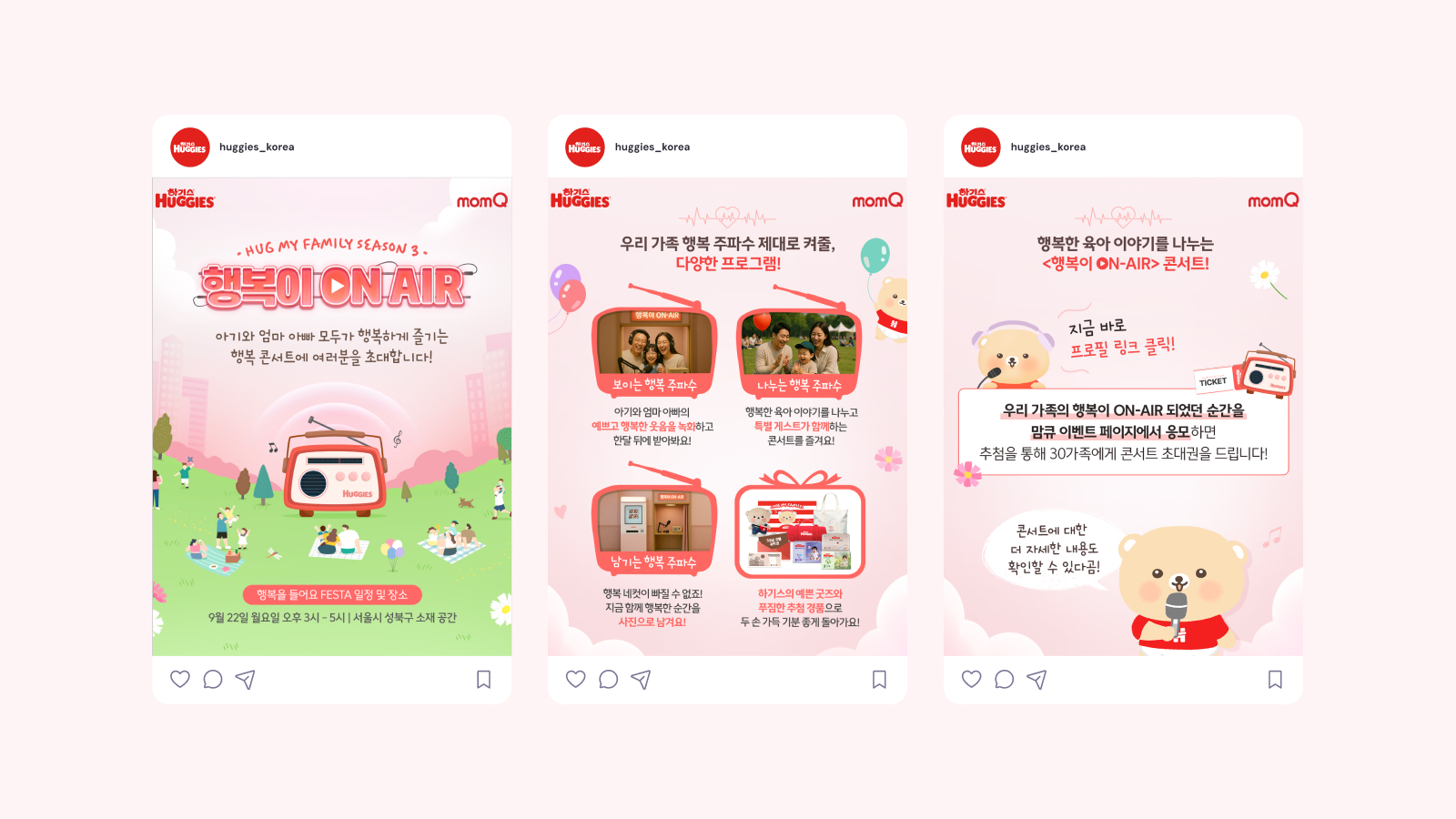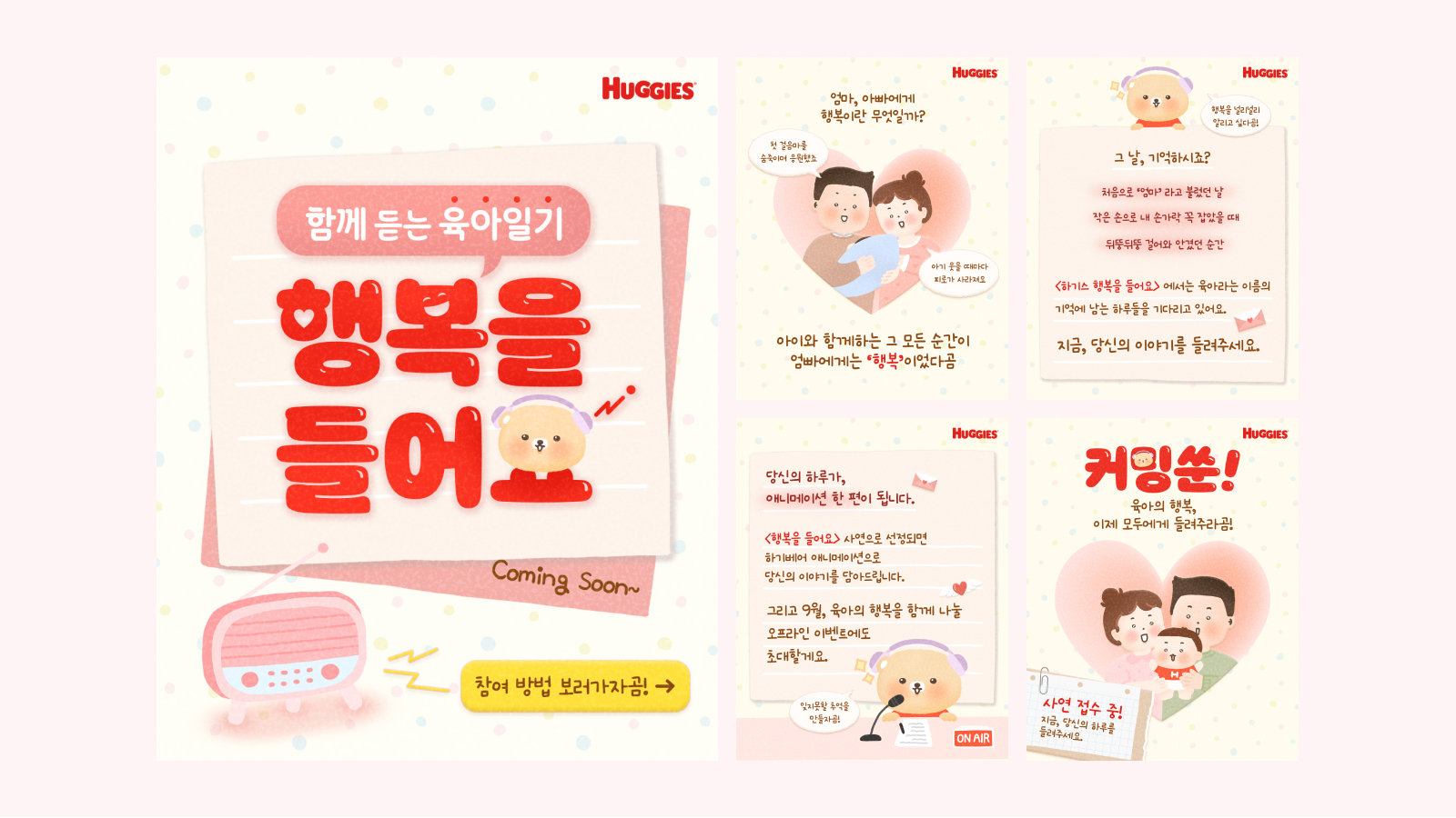 오프라인 행사인 2025년 ‘행복이 ON AIR 콘서트’는 가족 참여형 프로그램을 통해 육아 공감대를 형성하고, 일상을 담은 콘텐츠로 브랜드 메시지를 자연스럽게 전달했습니다. 또한 가족의 이야기를 기반으로 한 일러스트 영상 콘텐츠 제작 이벤트를 운영하며 SNS 참여를 유도했고, 다양한 에피소드형 콘텐츠를 확보했습니다.