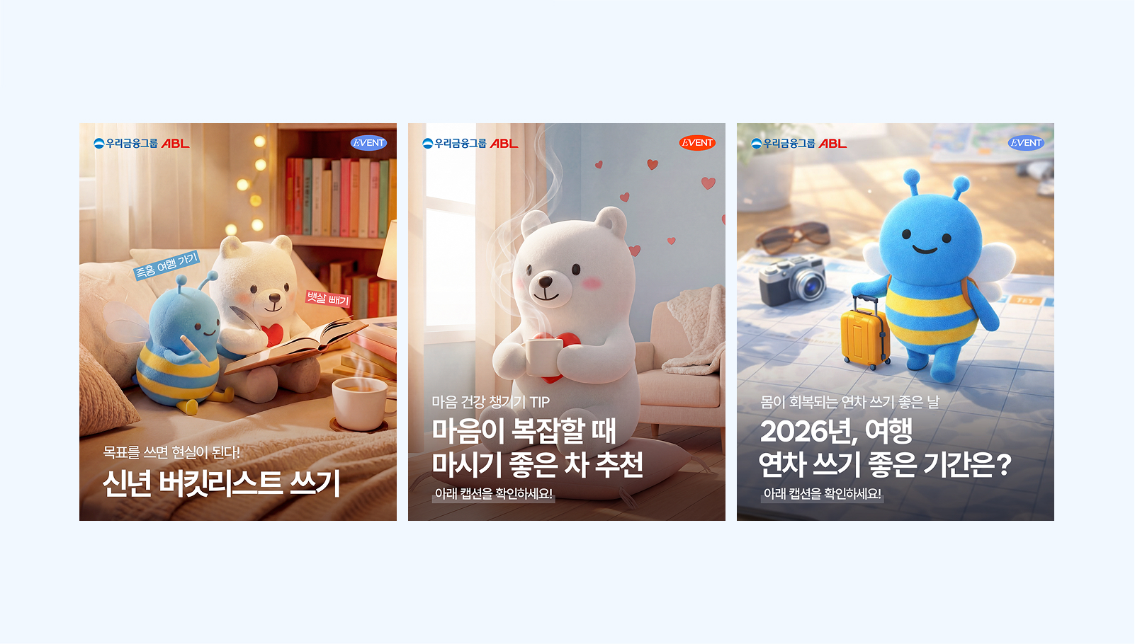 온더플래닛은 ABL생명과 함께 패션, 요리, 여행, 독서, 별자리 운세 등 고객이 선호하는 라이프스타일 카테고리를 중심으로 ‘콘텐츠로 만나는 더 나은 삶’을 구현했습니다. ALLWAYS ACTION 배려곰 다이어리, A BETTER MEAL 배려곰 건강 뉴스, 별자리와 건강을 결합한 CULTURE CLUB 등 시즌 이슈와 트렌드를 반영한 콘텐츠를 통해 건강 관리와 일상의 즐거움을 함께 제안했습니다.