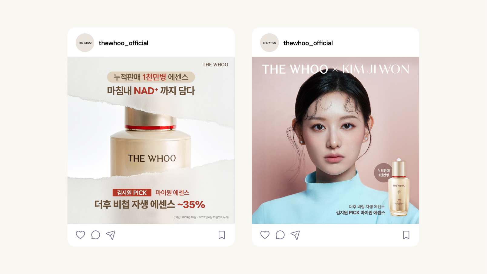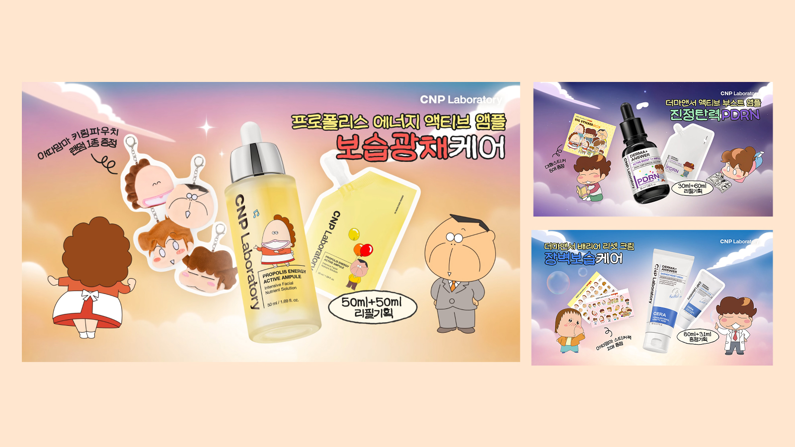 LG생활건강 뷰티 브랜드 캠페인은 고급스러운 콘셉트부터 친근한 접근까지 폭넓게 구성되었습니다. 더후는 한국 궁중 문화의 헤리티지와 현대 과학의 조화를 강조하며 리브랜딩을 통해 한국적인 고급스러움을 담아냈습니다. CNP는 피부 전문가가 엄선한 성분을 기반으로 한 처방 화장품 브랜드로, 아따맘마 캐릭터와의 협업을 통해 젊은 층과의 접점을 넓혔습니다. 빌리프는 ‘안전하고 정직한 스킨케어’라는 브랜드 메시지를 바탕으로 ‘믿음꽁꽁마켓’ 팝업 스토어를 운영하며 대표 제품인 아쿠아 밤 크림을 여름 시즌 필수 아이템으로 소개했습니다.